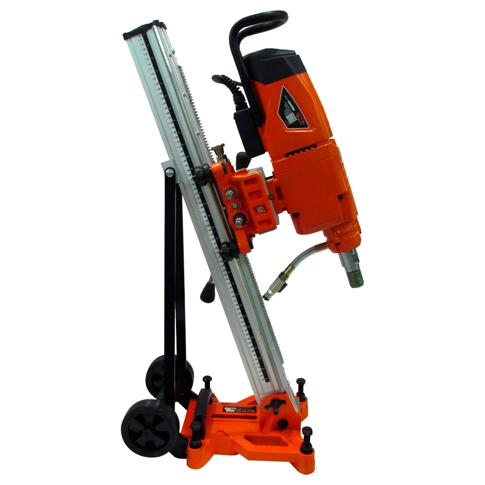 Бурильна установка GTM DK-350/2/45 - електрообладнання для мокрого буріння отворів в бетонних, кам'яних, цегляних і гранітних поверхнях за допомогою алмазних коронок. Представлена модель фіксується на спеціальній стійці (станині), яка входить в стандартну комплектацію. Підключається до системи водяного охолодження і дозволяє проробляти отвори діаметром до 350 мм. Алмазна коронка кріпиться безпосередньо до шпинделя без використання патрона.