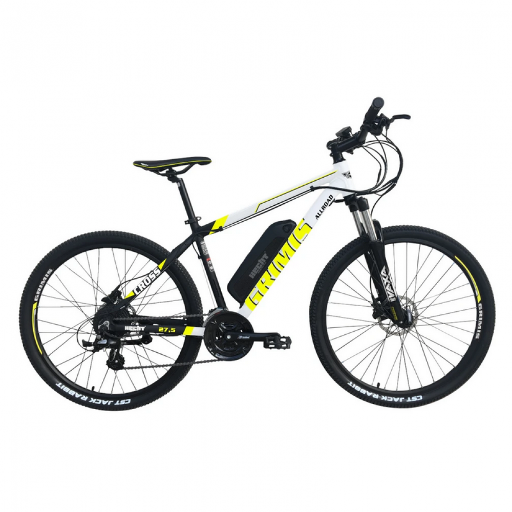 Спортивний відкритий електровелосипед HECHT GRIMIS WHITE . Перемикач Shimano. Передня підвіска регульована вилка. Дискові гальма. Алюмінієва рама 18" з акумулятором 36 В/14 Ач. Мотор 250 Вт, колеса 27,5", вага 20,5 кг. Запас ходу електромотора до 110 км. Електродвигун включається автоматично, як тільки ви наступаєте на педалі. Отже, електровелосипед не працює як мотоцикл, але він дуже допомагає вам крутити педалі. Кнопки на лівому кермі можна використовувати для встановлення рівнів, у яких вам допоможе мотор. За допомогою двигуна можна легко піднятися на гірку, яка змусить спітніти навіть найзагартованіших спортсменів. Ви також можете вимкнути допомогу електромотора.