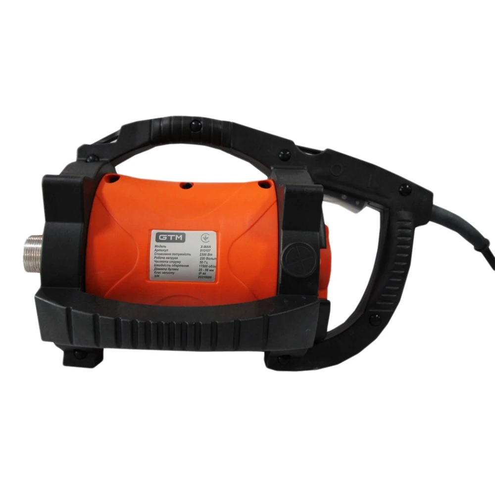 GTM X-MAN - професійне обладнання для ущільнення бетонної маси при будівельних роботах. При роботі генерує вібрації, які ефективно видаляють повітря з суміші, завдяки чому бетон стає міцнішим і довговічнішим, а також заповнює порожнечі. Для підключення до вібратора можна використовувати гнучкі вали від 2 до 6 м, а також вібробулави діаметром 38-58 мм.