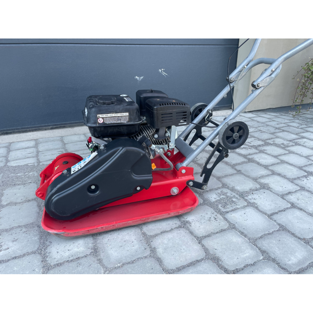 Його фіксація відбувається надійно завдяки металевій планці з трьома болтами. Гравій, камені, грунт та інші нерівні поверхні обробляються металевою пластиною (підошвою) розміром 580 * 550 мм. Нерівні поверхні грунту або бруківки слід ущільнювати за допомогою гумового килимка, який також йде в комплекті поставки. Робоча швидкість досягає 35 м/хв. Забезпечуючи швидке і комфортне виконання великих обсягів роботи.