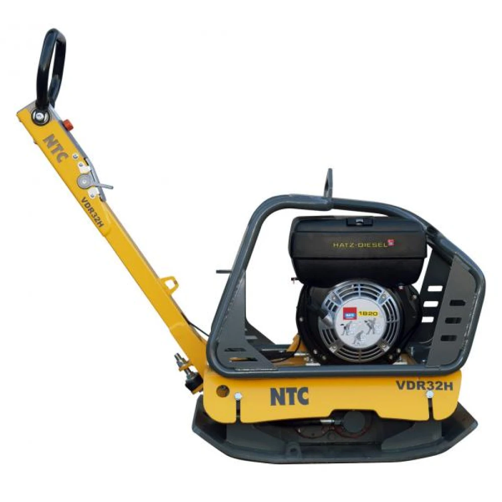 NTC VDR32H - професійне обладнання для ущільнення ґрунту, асфальту та дорожнього покриття при будівельних роботах. При роботі генерує вібрації з частотою 90 Гц, завдяки яким грунт ущільнюється на глибину до 50 см. За високу продуктивність віброплити відповідає 4-тактний дизельний одноциліндровий двигун HATZ 1B20 з потужністю 4,5 к.с. Дана модель є реверсивною, максимальна швидкість руху під час роботи вперед і назад становить 22 м/хв.