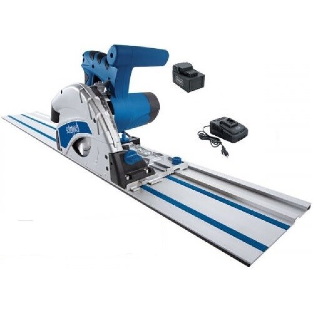 - акумуляторна занурювальна пилка; - акумулятор; - Зарядний пристрій; - 2 напрямні рейки (по 700 мм); - запобіжник від перекидання; - картонна коробка; - інструкція з експлуатації; - Гарантійний талон