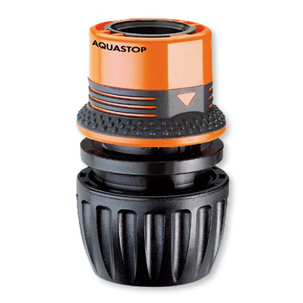 Єдиний конектор для трубок з різними діаметрами: прогумована поверхня з опуклими точками гарантує ідеальний «зчеплення» кінчиків пальців навіть мокрими руками і захищає фітінг від можливих ударів. Запатентована внутрішня пружина надзвичайно стійка і непроникна для води, виготовлена з надміцного пластику. З системою Aquastop, яка дозволяє підключати або відключати аксесуар без необхідності відключення крана.