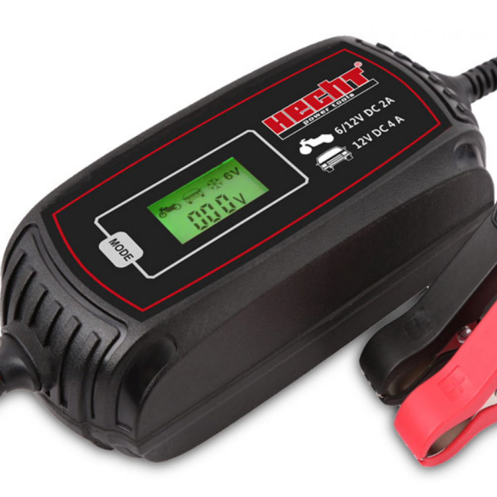 HECHT 2018 - надійний зарядний пристрій для автомобільних та мотоциклетних акумуляторів 6/12 В (PB, свинцево-кислотні, GEL, AGM, MF, Ca/Ca) ємністю 3-120 Ач. Оснащений сучасним світлодіодним дисплеєм, легко керується та має захист від зворотної полярності та перевантажень. Компактний і портативний, ідеальний для зарядки в дорозі.