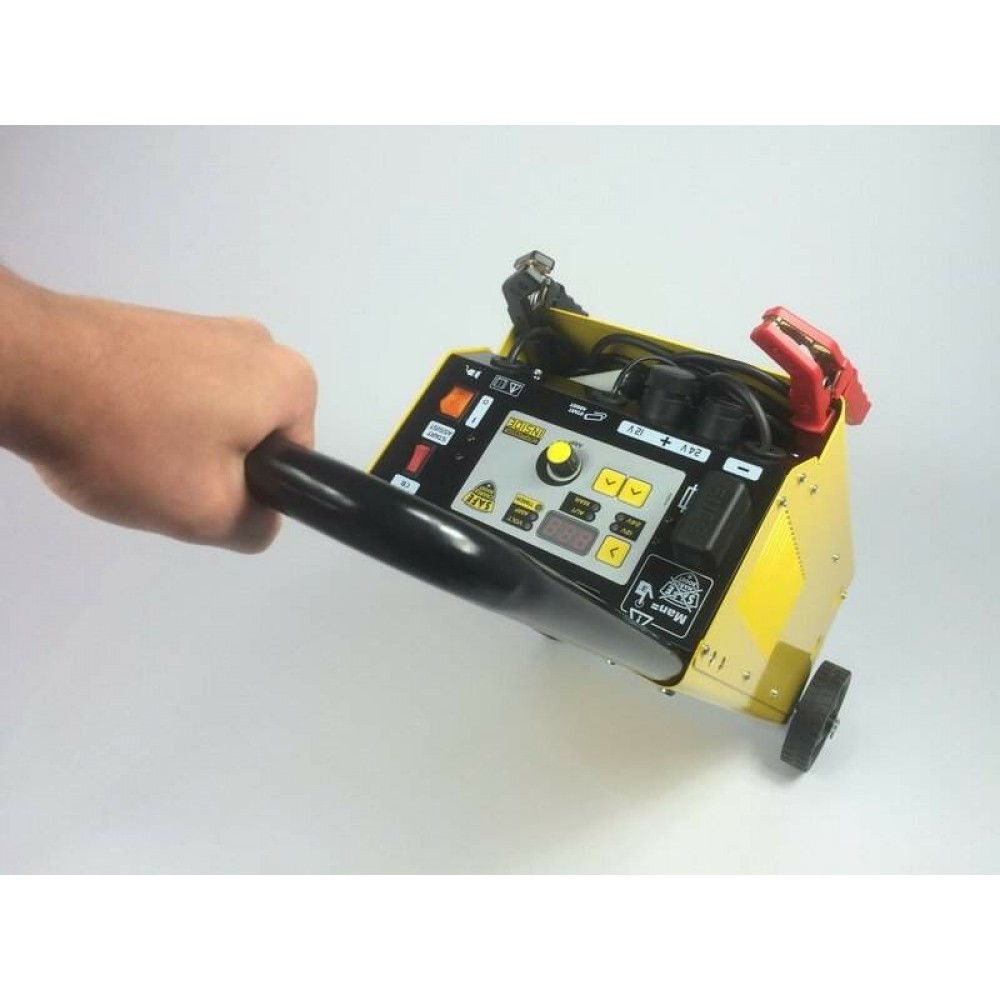 У пускозарядному апараті передбачена можливість заряджання акумуляторних батарей ємністю від 5 до 800 Аг. Підходить для підключення пристроїв з напругою на 12В, так і на 24В через відповідні роз'єми на панелі управління.