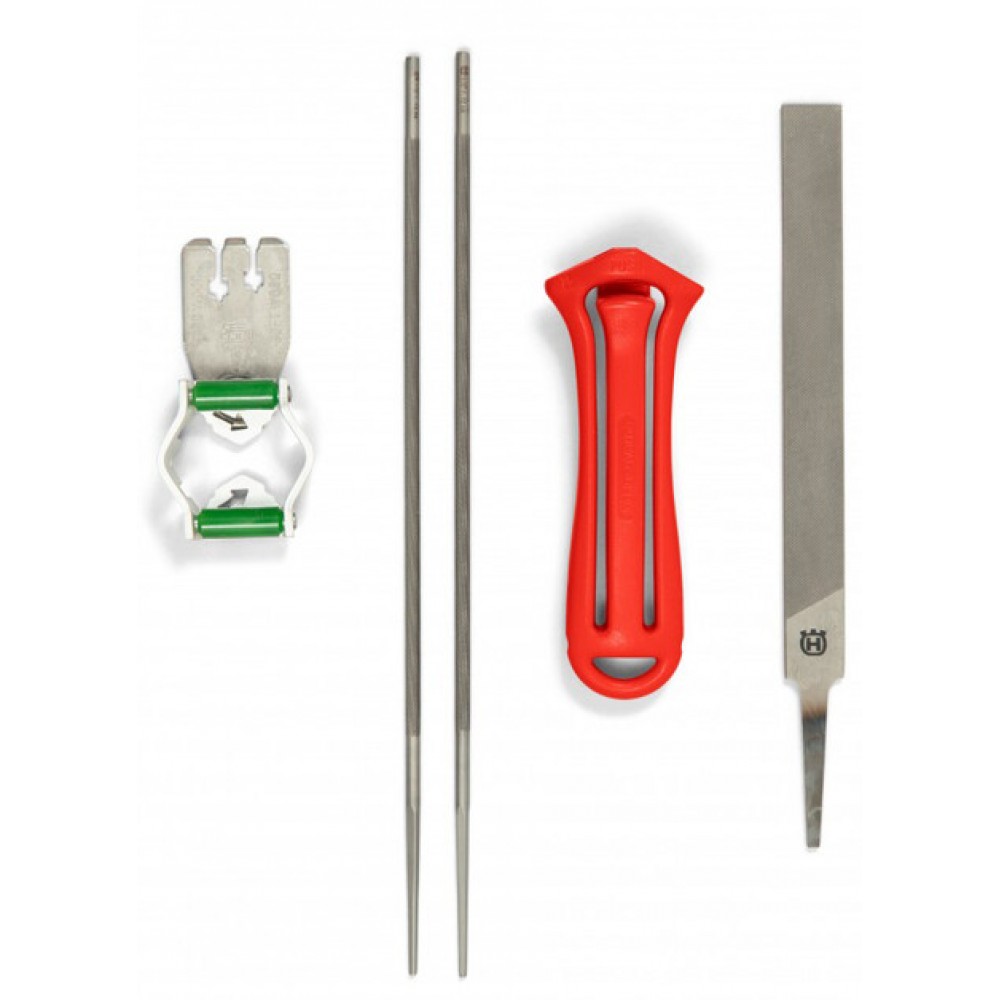 - Husqvarna (5878068-01) - якісний набір інструментів, необхідних для заточування та обслуговування ланцюгів пилок;