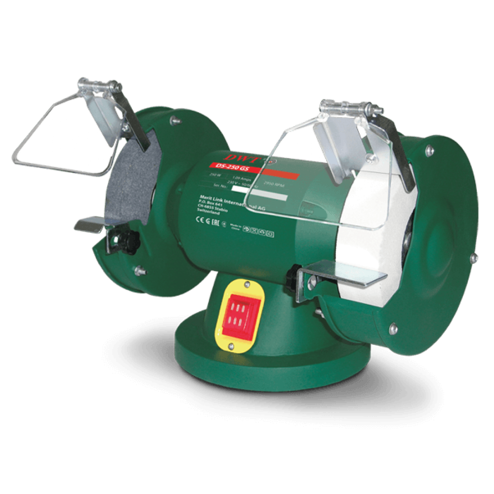 - Електроточило; - шліфувальний диск (2 шт.); - кріпильні гвинти з гайками (2 шт.); - опорна пластина для заготівлі (2 шт.); - барашкові гайки з гвинтами (2 шт.); - захист від іскор із кріпленням (2 шт.); - інструкція з експлуатації; - гарантійний талон; - картонна коробка