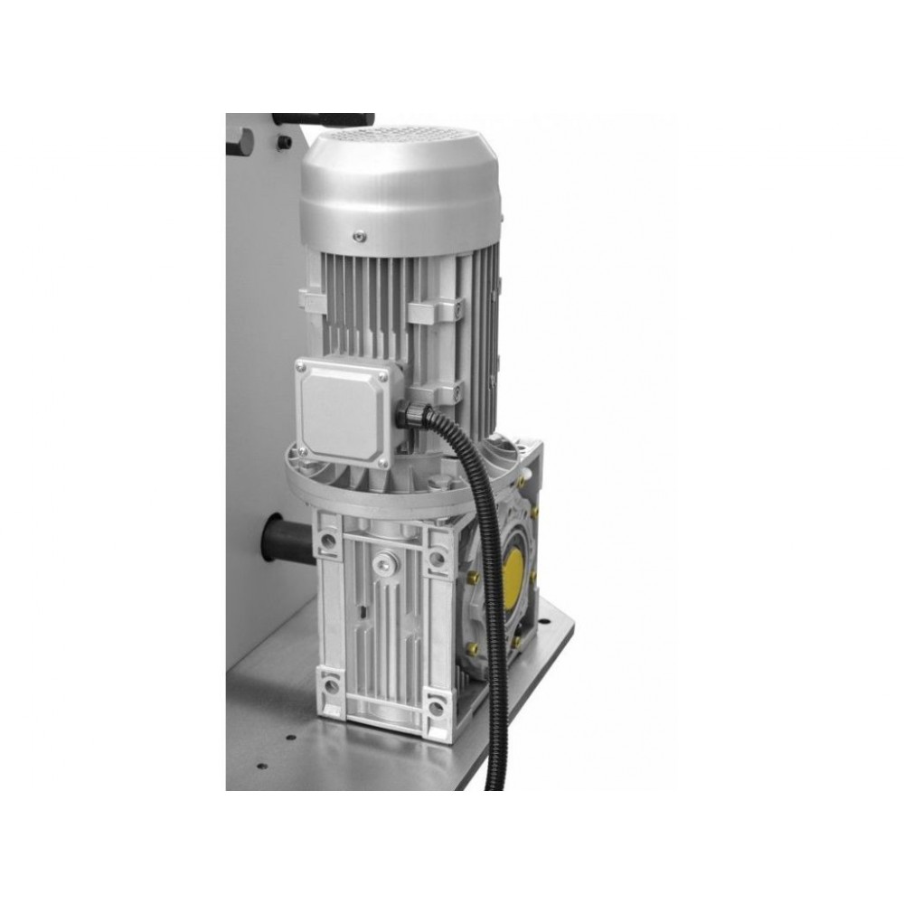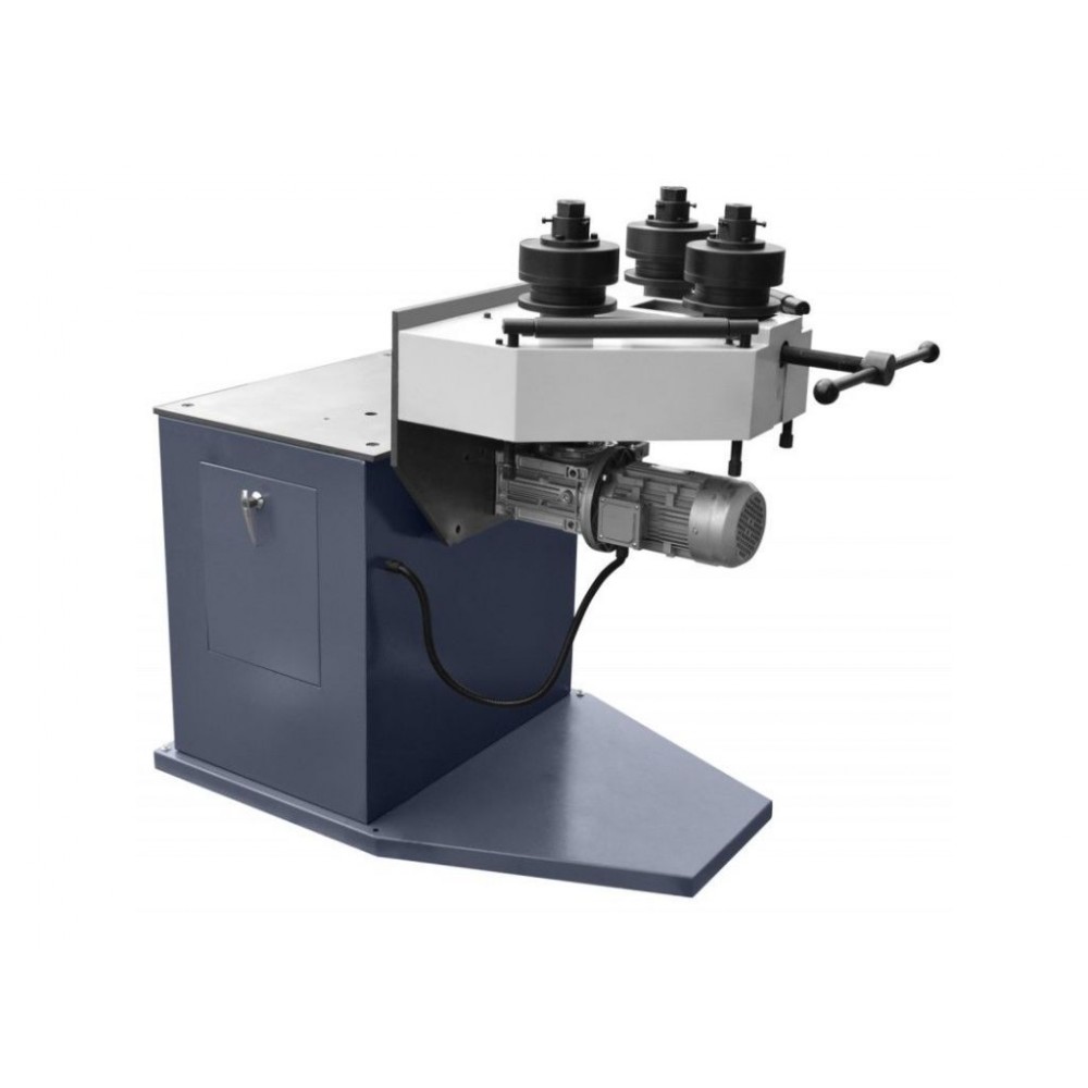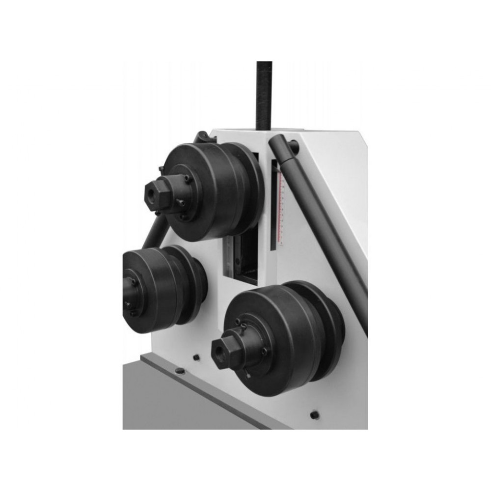 Шліфовані ролики із загартованої сталі забезпечують точне ведення матеріалу. Притискний ролик з механічним регулюванням за нанесеною шкалою дозволяє точно налаштувати радіус згину і забезпечує високу повторюваність. Для управління використовується окрема стійка з 2 ножними педалями і кнопкою аварійної зупинки. Завдяки товстостінному чавунному корпусу цей верстат для гнуття арматури і профілю має високу стійкість до статичних і динамічних навантажень, що робить його ефективним для промислових умов.