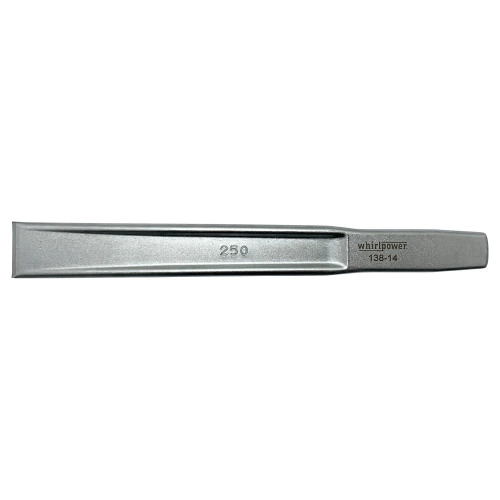 Whirlpower 138-14-250- плоске слюсарне зубило, що призначається для побутового та професійного використання при обробці металу. Наконечник зубила має ширину 29 мм, на інструмент додатково нанесені ребра жорсткості, що значно посилює конструкцію.