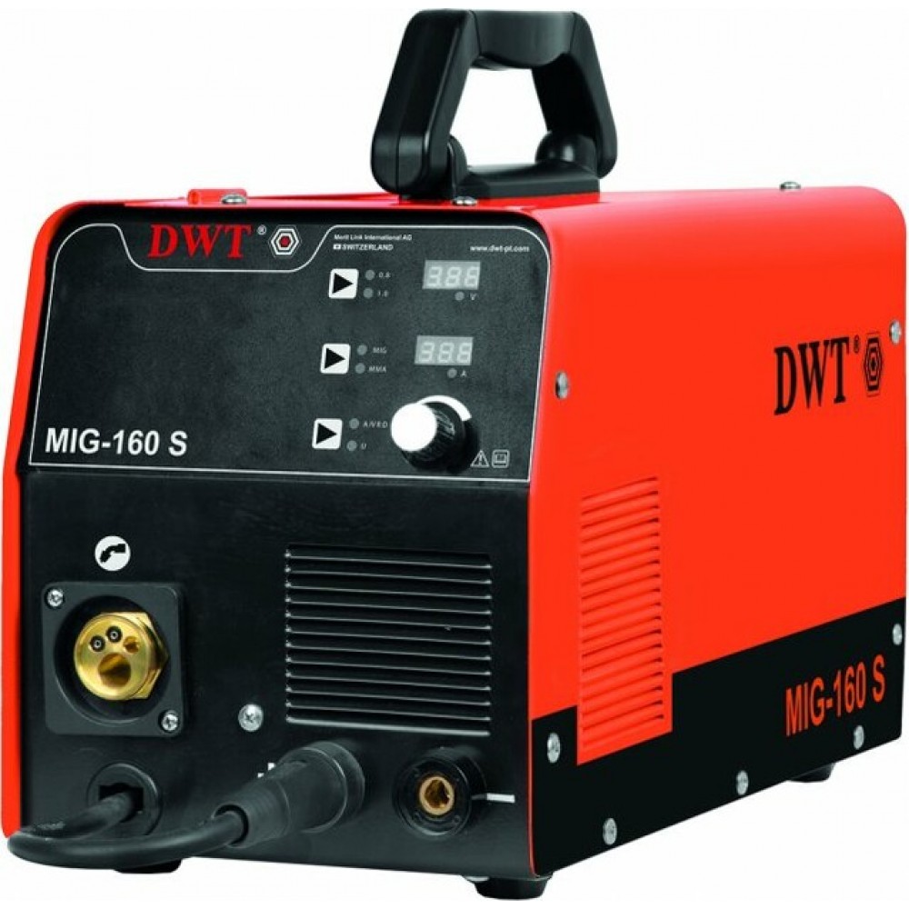 MIG-160 S від швейцарського бренду DWT - мобільний та компактний інвертор для ручного дугового зварювання електродами на постійному струмі. Має три режими зварювання: MIG/MAG з газом і без нього, MMA. Сконструйований на основі IGBT-транзисторів, що забезпечує високі та стабільні зварювальні характеристики.