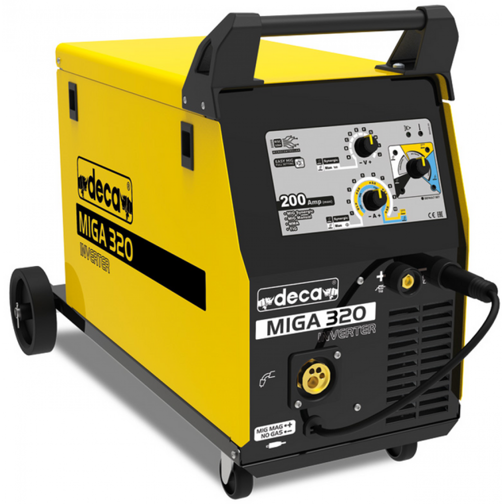 Зварювальний напівавтомат Deca MIGA 320 - оптимальний варіант за співвідношенням ціни та якості. Його можна застосовувати для зварювання за допомогою дроту або електродів, що дозволяє працювати з різними видами металу.